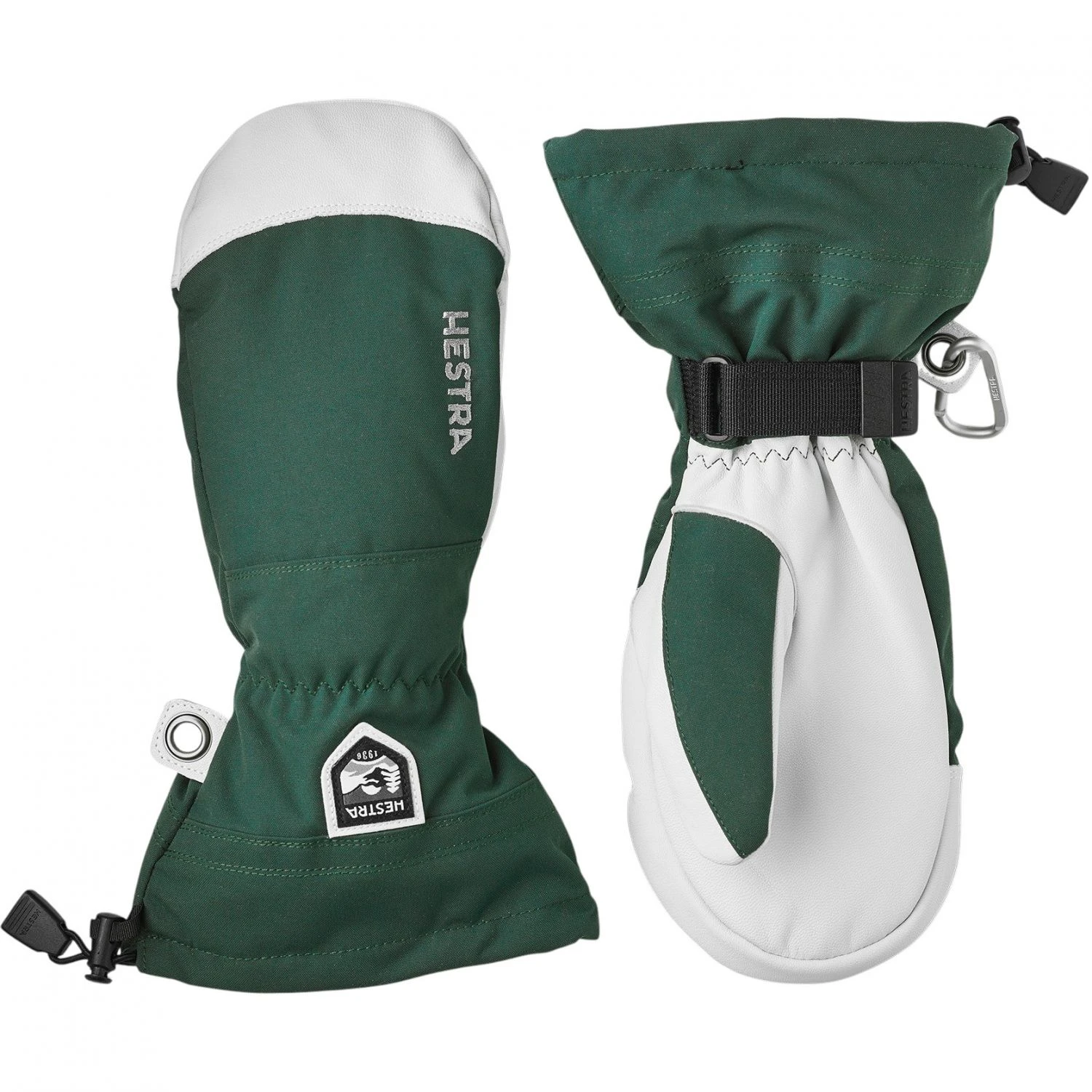 Outer material: Upper section made of windproof, waterproof and breathable HESTRA Triton three-layer polyamide fabric. Proofed Army Leather-goat leather palm.