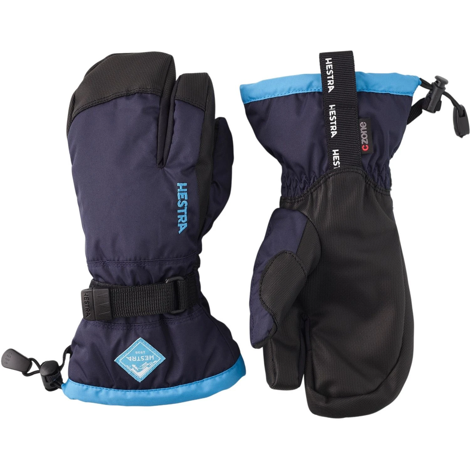 Hestra Gauntlet CZone Jr, 3-finger ski gloves, junior, dark navy/turquoise
